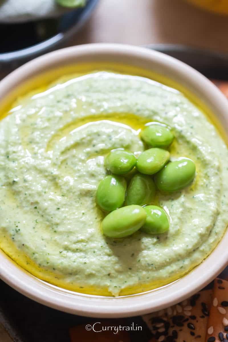 Edamame hummus is one of the simplest and satisfying dips and sandwich spreads. This healthy and flavorful dip has all the ingredients of a hummus, but without chickpeas. This protein-rich dip features the nutritious edamame, which are green soybeans, along with fresh cilantro to give it a fun green spin and pack more flavor into it.